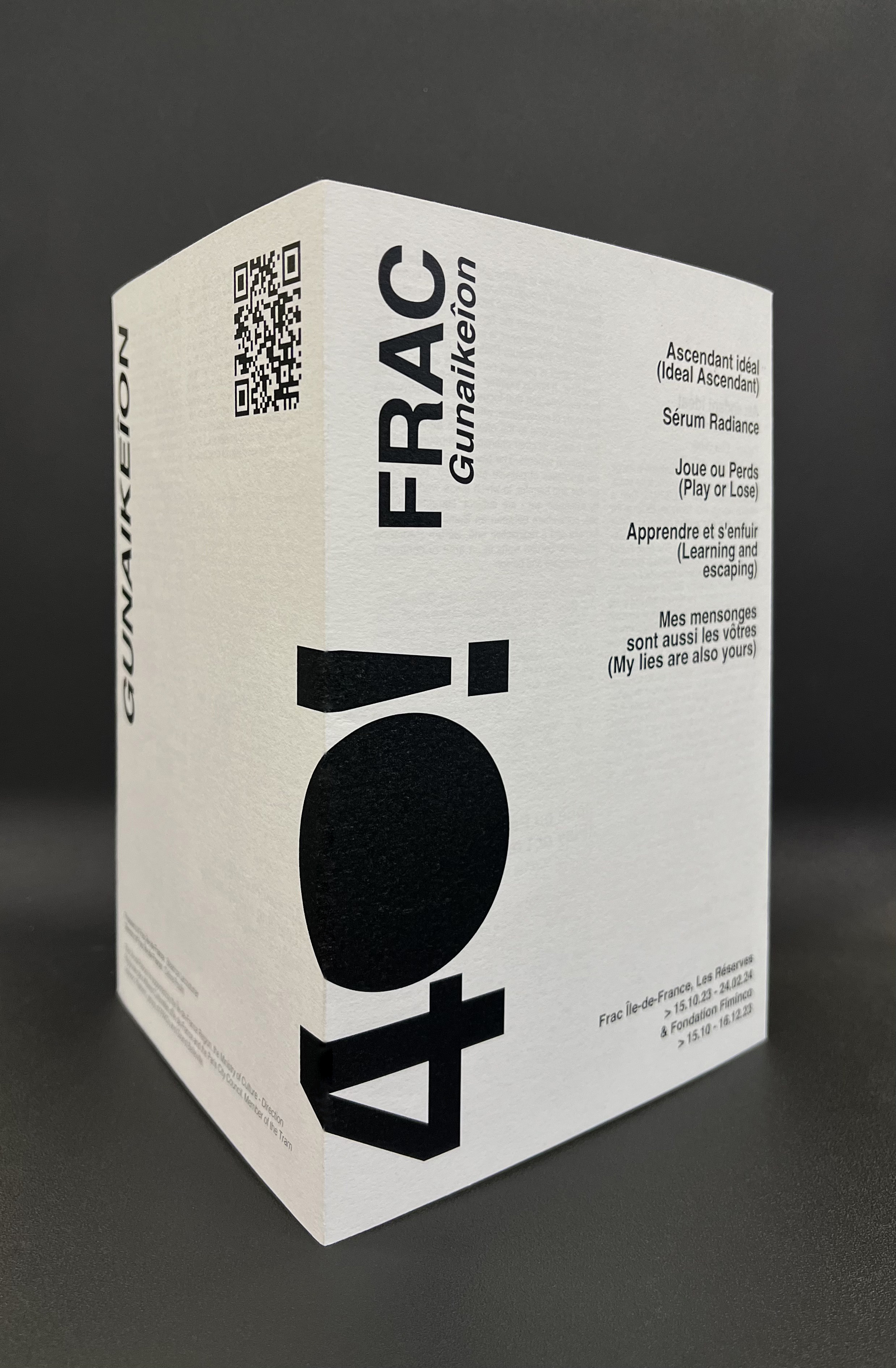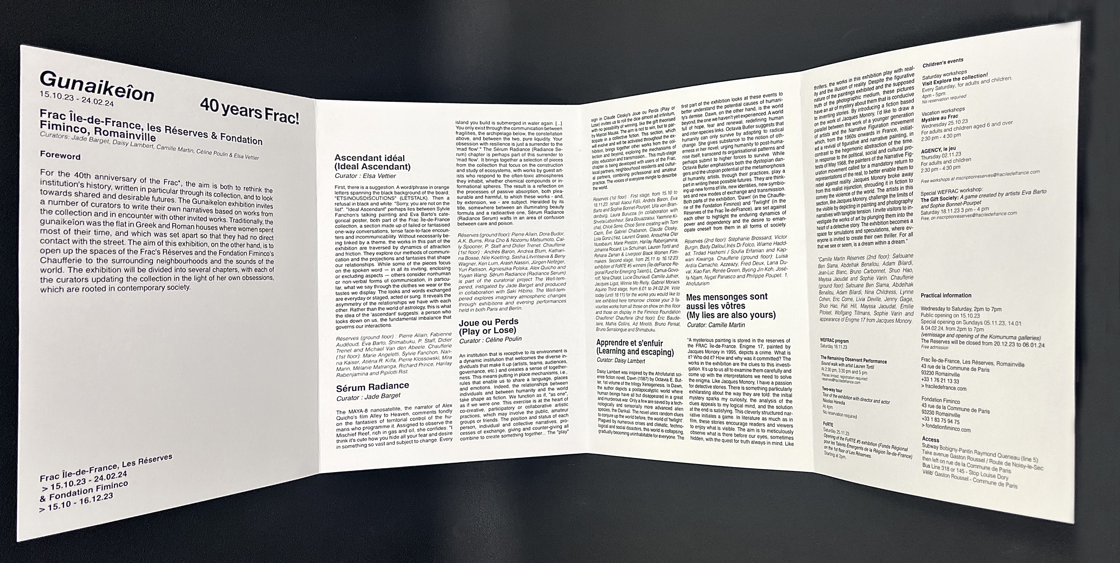 Creating and typesetting a typographic leaflet/brochure for FRAC’s 40th anniversay exhibtion: GUNAIKEÎON.