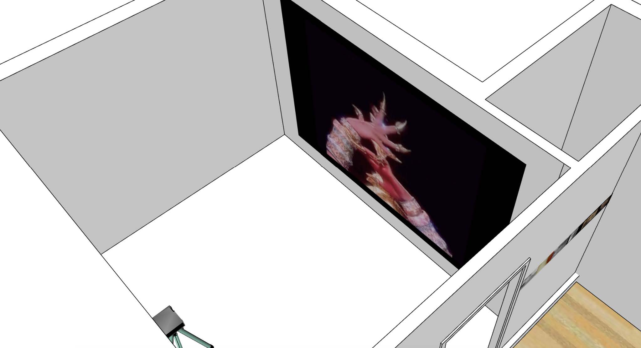 3D mockup of the scenography in the gallery space