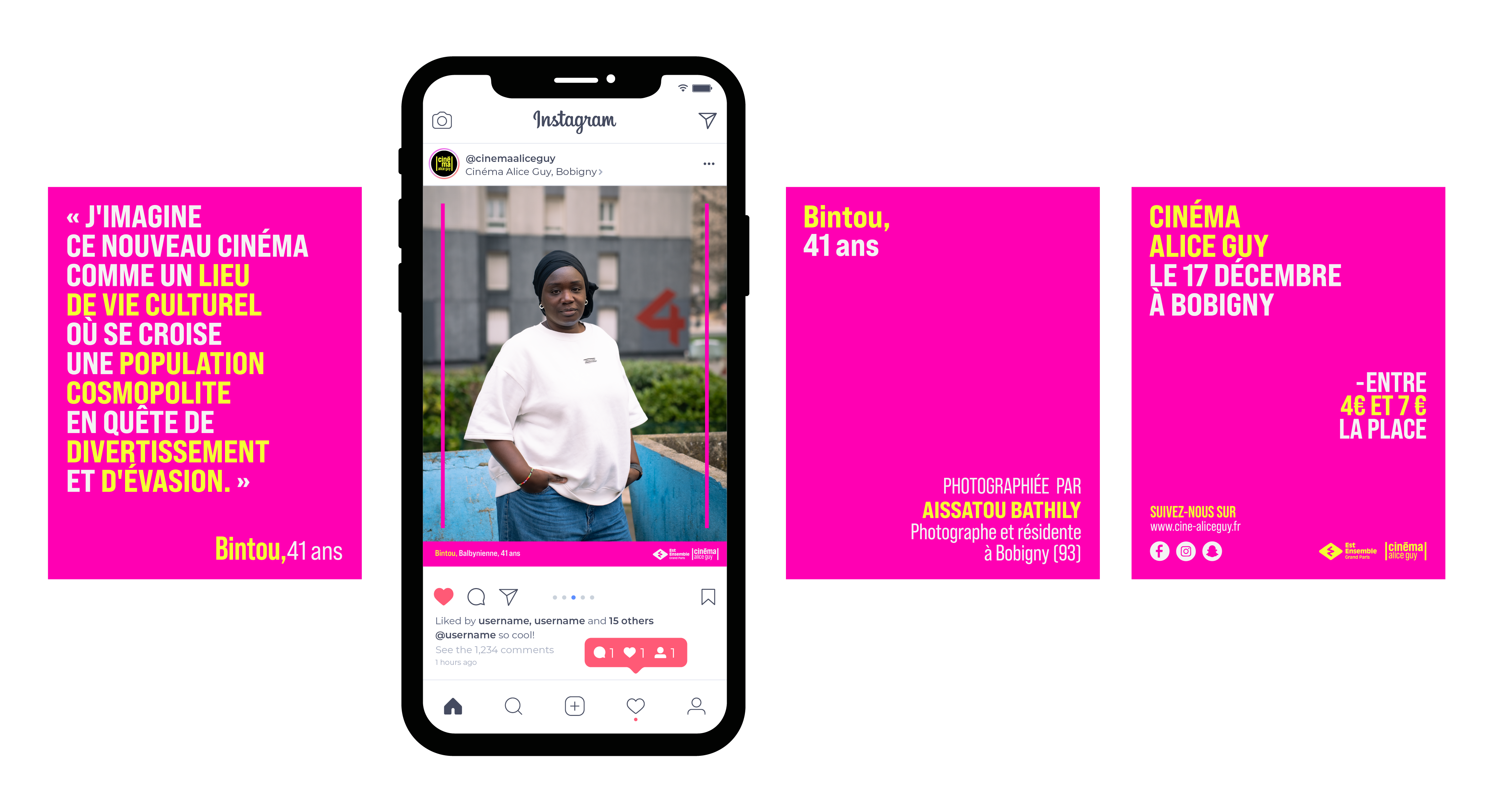 Various creations and production for the new Cinéma Alice Guy in Bobigny, France.