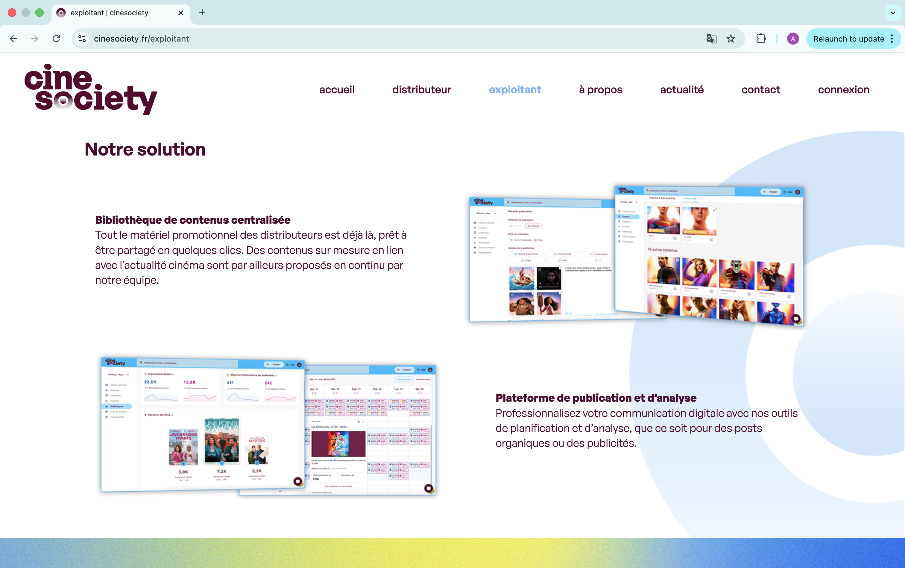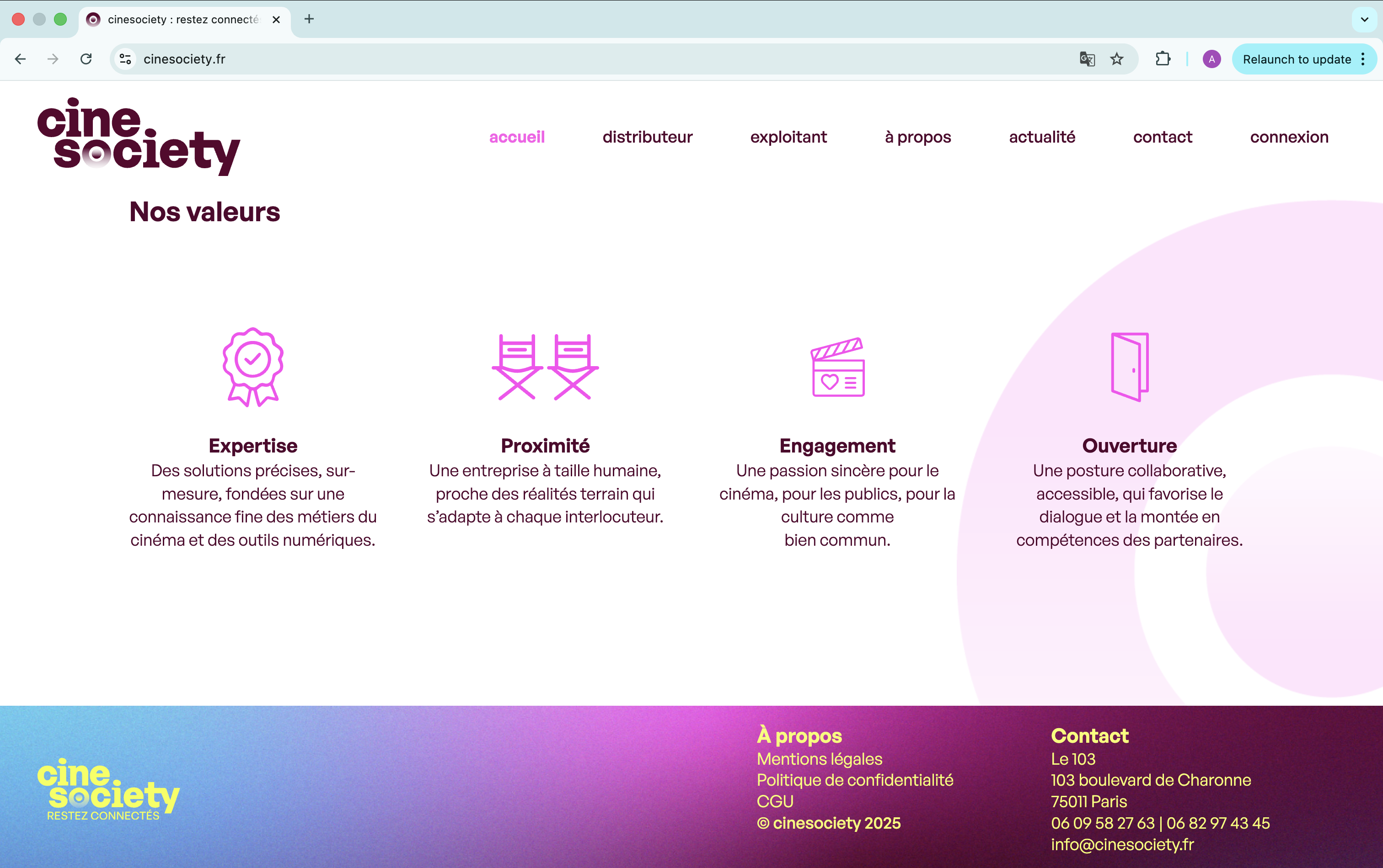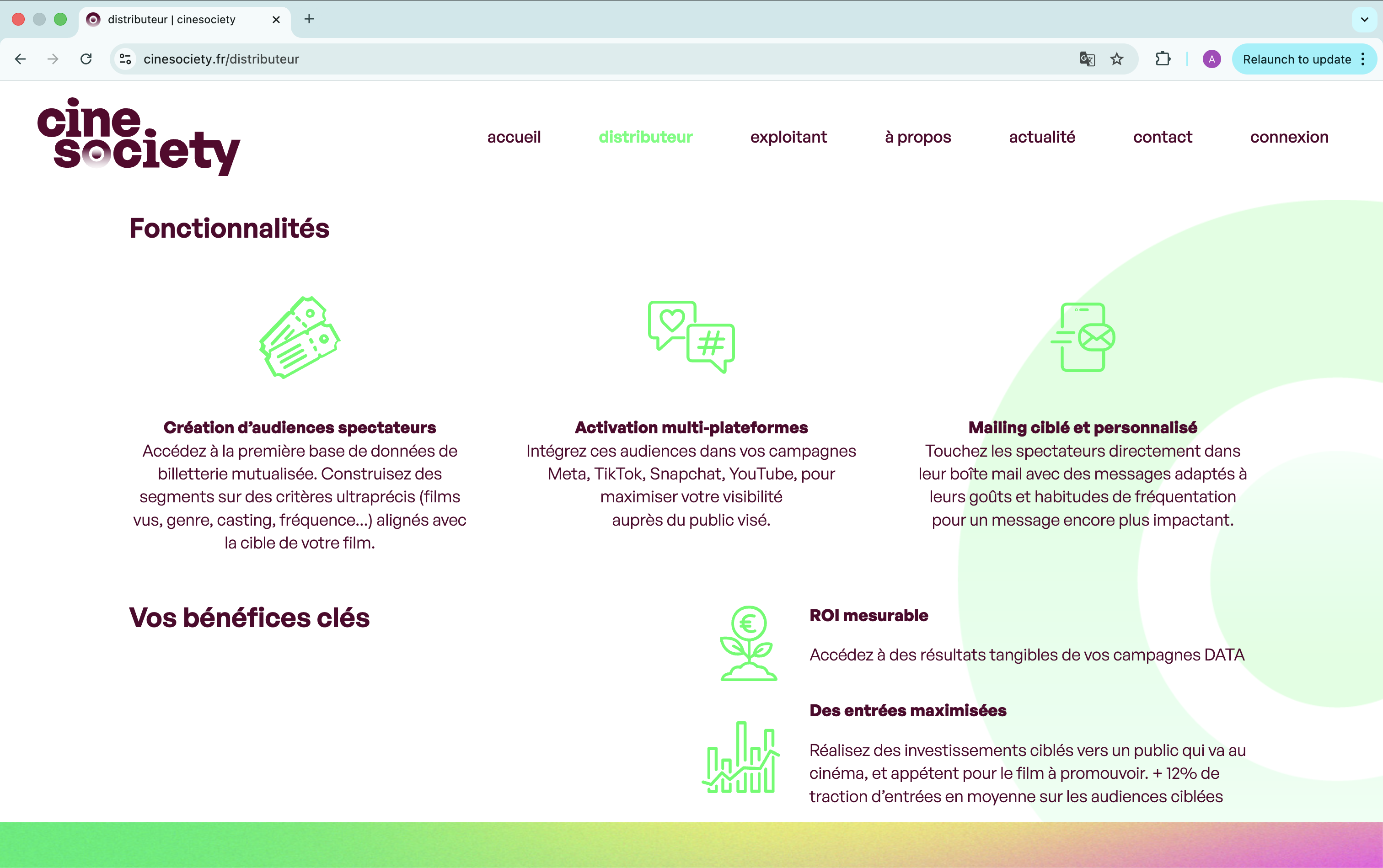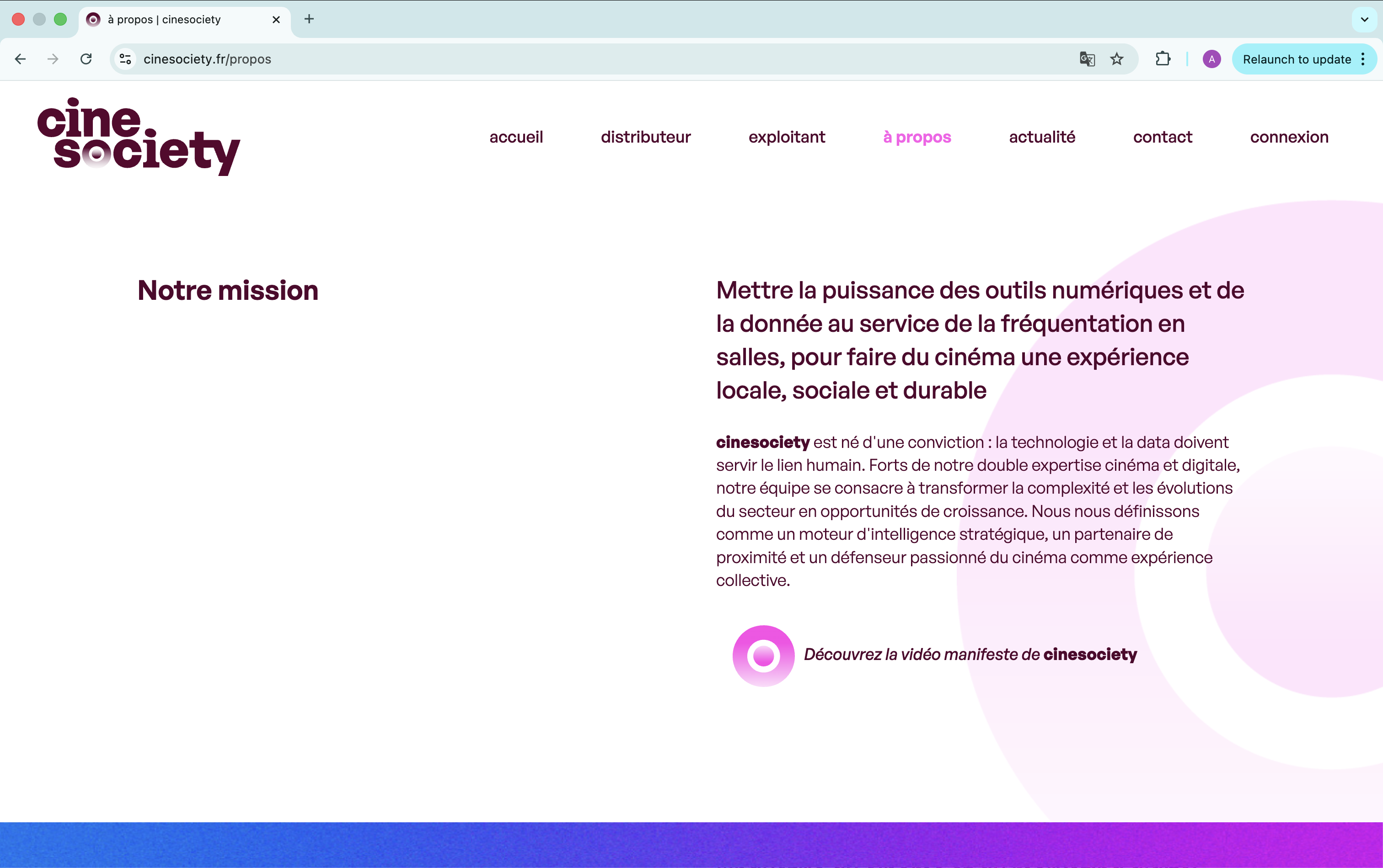 Visual identity and UX/UI redesign for cinesociety, a strategic platform connecting film distributors, cinemas, and their audiences.